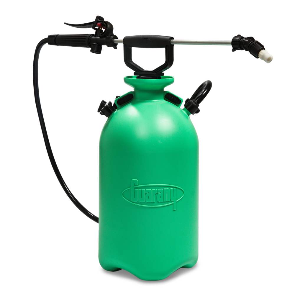 A handheld compression sprayer with a tank which uses green eco-plastic made from sugar cane.